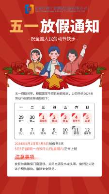 根據(jù)國(guó)家法定節(jié)假日安排及公司實(shí)際情況,現(xiàn)將2023年五一勞動(dòng)節(jié)放假事宜通知如下:一、放假時(shí)間本次放假時(shí)間為2023年4月29日(星期六)至5月3日(星期三)放假調(diào)休,共5天。4月23日(星期日)、5月6日(星期六)上班。請(qǐng)各位員工提前做好工作安排,確保放假期間各項(xiàng)工作能夠順利交接。
